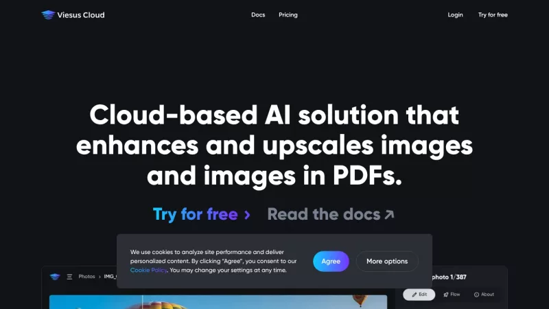 Viesus Cloud uses AI to automatically enhance and upscale your images and PDFs. It fixes common issues like blurriness, poor lighting, and compression artifacts, making them look crisp and professional. This is perfect for businesses that rely on high-quality visuals, saving you the hassle of manual editing. Plus, it's all done in the cloud, so no need for expensive software or technical skills.
